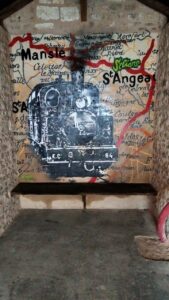 Une fresque murale a été réalisée, représentant le train qui rentre en gare avec la carte ferroviaire.