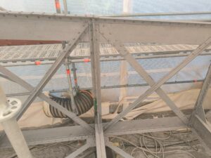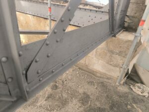 La passerelle après avoir été emballée, est à présent sablée et traitée , elle va retrouver très rapidement sa couleur d’origine.